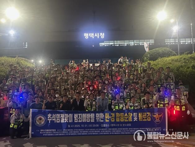 불탑뉴스신문사 차복원 기자 | 2025년 추석 명절을 맞아, 평택시는 지난 10월 1일 지역 주민들의 안전한 명절 환경조성을 위해 자율방범연합대 및 자율방범대원들과 함께 합동 순찰을 진행했다.