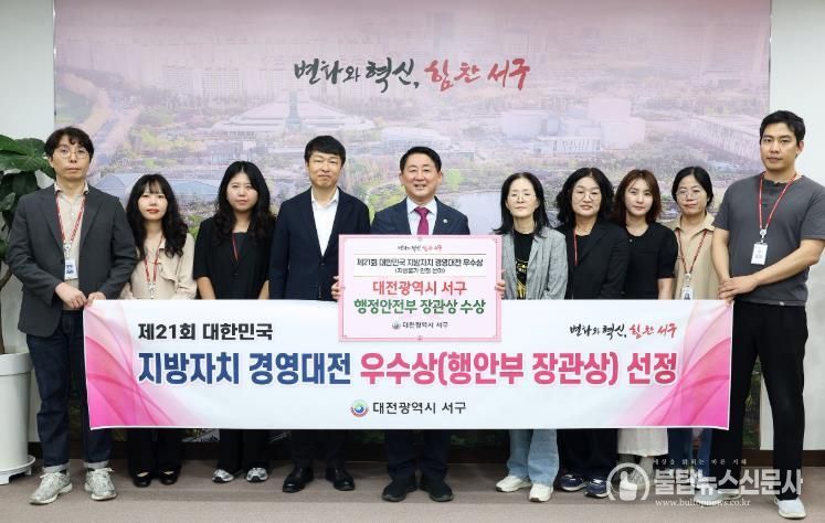 불탑뉴스신문사 차복원 기자 | 대전 서구는 제21회 대한민국 지방자치 경영대전에서 지방 물가 안정 분야 우수상(행정안전부 장관 기관 표창)을 받았다고 13일 전했다.