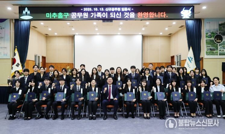 불탑뉴스신문사 차복원 기자 | 인천 미추홀구는 지난 13일 구청 대회의실에서 신규 공무원 42명에 대한 임용장 수여식을 개최했다.