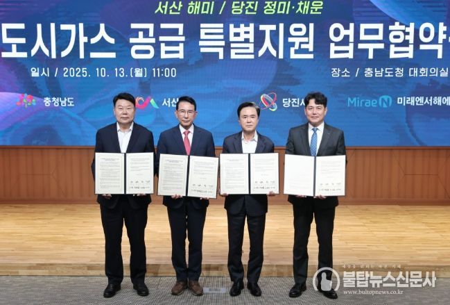 불탑뉴스신문사 차복원 기자 | 당진시는 13일 충남도청 대회의실에서 충청남도, 미래앤서해에너지와 함께 도시가스 공급 특별지원 업무협약(MOU)을 체결했다고 밝혔다.