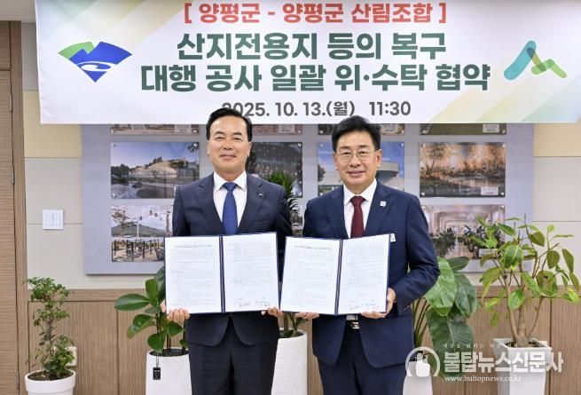 전진선 양평군수는 “이번 협약을 통해 전문적인 산지 복구 사업과 방치지의 체계적인 관리가 가능해졌다”며 “앞으로도 우기철 및 해빙기 합동점검 등 재해 예방 시스템 구축에 앞장서겠다”고 밝혔다.