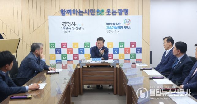 이날 박 시장을 비롯한 시 신도시 개발 관계자, 관내 금융기관 이사장, 광명시흥 신도시 광명총주민대책위원회 대표자 등이 참석했다. 참석자들은 광명시흥 신도시 토지주의 대출 연장과 이자 유예 등 금융지원 대책을 모색했다.