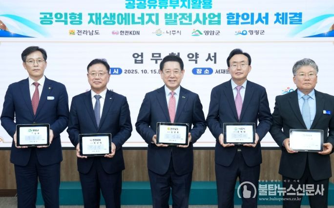 불탑뉴스신문사 송행임 기자 | 전라남도는 15일 새정부의 재생에너지 대전환 기조와 재생에너지 보급 확대 정책에 따라 나주시, 영광군, 영암군, 한전KDN과 탄소중립 실현·에너지 기본소득 실현을 위한 ‘공익형 재생에너지 발전사업’ 업무협약을 했다고 밝혔다.