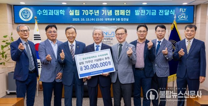 한편, 수의과대학은 10월 23일 오후 5시 칠암캠퍼스 100주년 기념관 e스포츠 주경기장에서 동문, 교직원, 학생 등 300여 명이 참석한 가운데 ‘70년 개척의 자부심으로 100년을 향한 새로운 비상’이라는 슬로건으로 설립 70주년 기념행사를 개최할 예정이다. 수의과대학 동문들을 중심으로 70주년 행사를 성공적으로 개최하기 위해 모금한 1억 원의 발전기금을 기념식 행사장에서 대학에 전달할 예정이다.