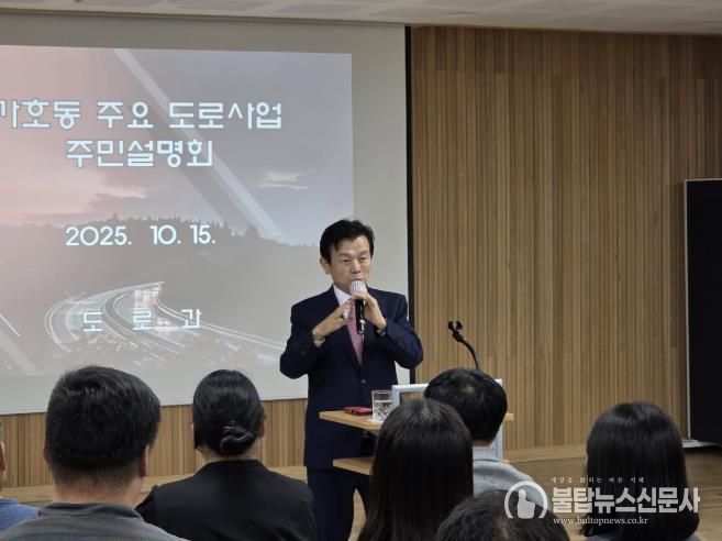 이번 설명회는 가호동 일원에서 추진 중인 통행불편 해소를 위한 ▲방아교차로 주변 도로 개선사업 ▲화물차 공영차고지 인근 교차로 개선사업 ▲은하수초등학교 앞 보도육교 개설사업 등 주요 도로사업 현황과 향후 계획을 주민들과 공유하고, 의견을 수렴하기 위해 마련됐다.