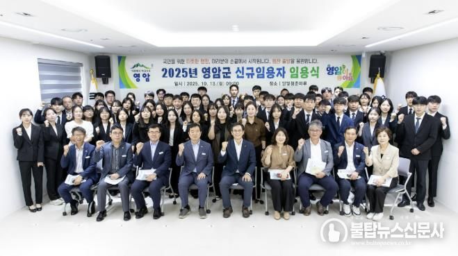 불탑뉴스신문사 차복원 기자 | 영암군이 13일 영암읍 청년종합소통센터 달빛청춘마루에서 ‘새내기 공직자 신규 임용식’을 열고, 새내기 공직자 66명에게 임용장을 수여했다.