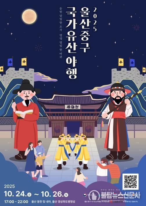 불탑뉴스신문사 차복원 기자 | 울산 중구가 오는 10월 24일부터 10월 26일까지 사흘 동안 울산 동헌 및 내아, 성남동 문화의거리, 울산 경상좌도병영성 일원에서 ‘2025 울산 중구 국가유산 야행’ 행사를 개최한다.