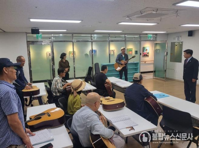 불탑뉴스신문사 한기석 기자 | 고성군이 운영하는 고성군종합사회복지관 분관에서는 10월 17일 저녁, 야간노래교실과 통기타반 수강생들을 격려하기 위해 이상근 군수가 직접 현장을 방문했다.