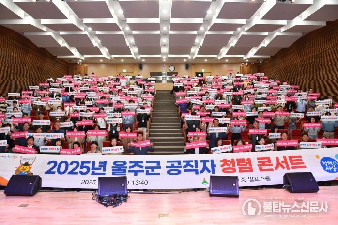 불탑뉴스신문사 차복원 기자 | 울산 울주군이 20일 군청 알프스홀에서 직원을 대상으로 공직사회 청렴문화 확산을 위한 ‘2025년 울주군 공직자 청렴 콘서트’를 개최했다.