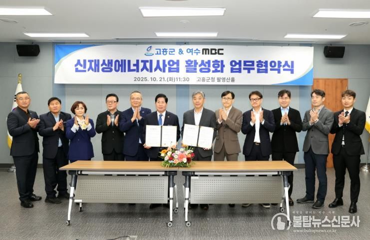 불탑뉴스신문사 차복원 기자 | 고흥군이 여수문화방송(사장 이호인)과 지역의 신재생에너지 활성화와 친환경 에너지 산업 육성을 위해 손을 맞잡았다.