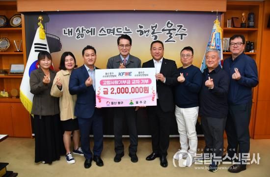 불탑뉴스신문사 송행임 기자 | 울주군 소상공인연합회와 울산 동구 소상공인연합회가 21일 고향사랑기부제 활성화와 지역 상생 발전을 위해 상호 지자체에 200만원씩 교차 기부를 실시했다.