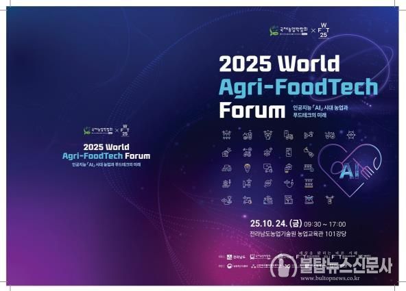나주시는 오는 10월 24일 전라남도농업기술원 대강당에서 전라남도국제농업박람회, 월드푸드테크협의회와 함께 ‘2025 월드 아그리 푸드테크(Agri-FoodTech) 포럼’을 연다고 21일 밝혔다.