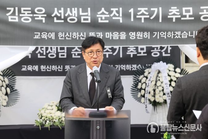 불탑뉴스신문사 차복원 기자 | 인천광역시교육청은 21일 시교육청 본관 앞 추모공간에서 故 김동욱 선생님의 순직 1주기 추모식을 진행했다.