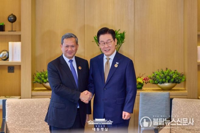 불탑뉴스신문사 차복원 기자 | 이재명 대통령은 27일 오전 제47차 아세안 정상회의 참석을 계기로 ‘훈 마넷’ 캄보디아 총리와 취임 후 첫 양자회담을 가졌다.