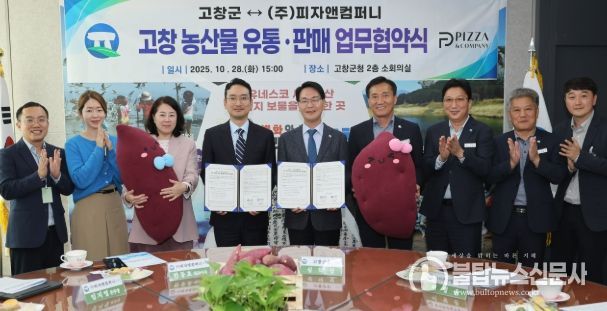 불탑뉴스신문사 송행임 기자 | 고창군이 지난 28일 오후 군청 회의실에서 ㈜피자앤컴퍼니(대표 한동효)와 고창 고구마를 활용한 피자개발 및 상생발전을 위한 업무협약(MOU)을 체결했다고 밝혔다.