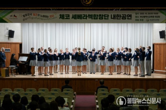 불탑뉴스신문사 차복원 기자 | 부산광역시교육청은 29일 오후 4시 세계적인 명성을 자랑하는 체코 ‘세베라첵 합창단’ 특별 공연을 교육청 대강당에서 성황리에 개최했다. 전 직원을 대상으로 진행된 이번 공연은 깊은 감동과 여운을 남기며 직원들에게 힐링과 활력을 선사했다.