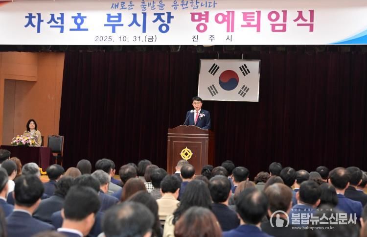 불탑뉴스신문사 송행임 기자 | 진주시는 10월 31일 오전 11시 시청 시민홀에서 ‘차석호 제24대 부시장 명예퇴임식’을 가졌다.