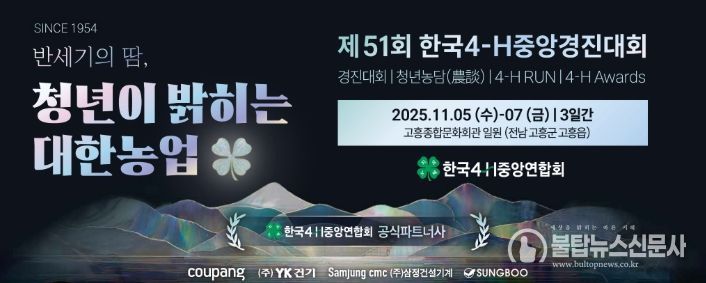 불탑뉴스신문사 차복원 기자 | 고흥군은 오는 11월 5일부터 7일까지 3일간, 고흥문화회관 일원에서 ‘제51회 한국4-H중앙경진대회’를 개최한다고 밝혔다.