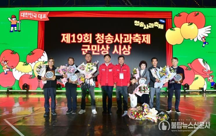 또한 축제 기간 중 열린 사과왕 시상식과 군민상 시상식이 축제의 의미를 한층 더했다. 사과왕 시상식에서는 ▲사과왕 조용태(안덕면) ▲우수상 김창율(부남면) ▲장려상 정무상(현서면) ▲황금진 도재범(안덕면) 씨가 수상의 영예를 안았으며, 군민상 시상식에서는 ▲임윤기(주산지리 이장) ▲권오영(신기2리 이장) ▲남법식(현동면체육회 부회장) ▲김영조(부남면 지역사회보장협의체 민간위원장) ▲권영선(바르게살기운동청송군협의회 회장) ▲권태욱(명성 TNS 전 대표) 씨가 수상했다.