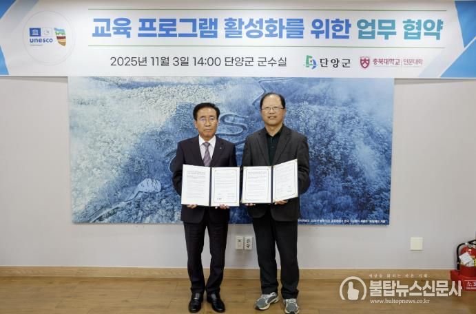 불탑뉴스신문사 차복원 기자 | 충북 단양군이 유네스코 세계지질공원의 교육 프로그램을 한 단계 도약시키기 위해 충북대학교 인문대학과 손잡고 융합형 교육사업을 본격화한다.