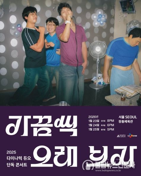 2025 다이나믹 듀오 단독 콘서트 '가끔씩 오래 보자'는 오는 12월 20, 21일 부산 벡스코 오디토리움, 24일 대구 엑스코 동관 4홀, 27일 광주 김대중컨벤션센터 다목적홀, 내년 1월 23, 24, 25일 서울 장충체육관에서 개최된다.