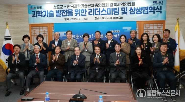 불탑뉴스신문사 차복원 기자 | 청도군과 한국과학기술단체총연합회 경북지역연합회는 7일 청도군청 제1회의실에서 청도군 간부공무원과 경북지역연합회 임원 등 30여 명이 참석한 가운데 ‘경북 과학기술 발전을 위한 리더스미팅’을 개최했다.