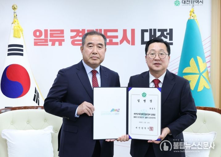 불탑뉴스신문사 차복원 기자 | 이장우 대전시장은 10일 시청 응접실에서 최창우 제4대 (재)대전일자리경제진흥원장에게 임명장을 수여했다.