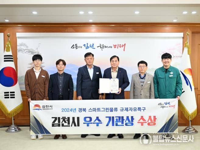 불탑뉴스신문사 차복원 기자 | 김천시는 지난 11월 6일 대전에서 이틀간 열린 중기부 주최 '혁신특구 ON 2025' 행사에서 스마트그린물류 규제자유특구 운영 성과를 인정받아 우수기관상을 수상했다고 밝혔다.