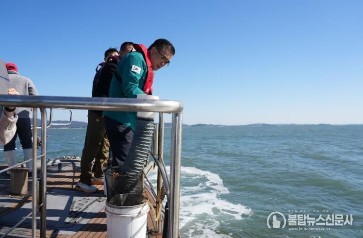 김기웅 군수는 지난 10일 서면 마량리 일원의 현장을 찾아 어민들을 만나고 “물김 양식의 정상화를 위해 영양제 보급 등 필요한 조치를 신속히 추진하고, 해역별 생육 상황을 면밀히 모니터링해 고품질 김 생산을 지원하겠다”고 밝혔다.