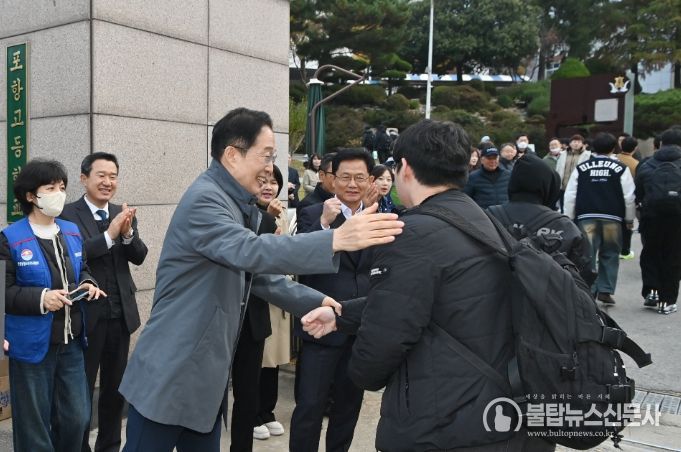 임 교육감은 오전 7시경 포항고등학교 정문 앞에서 수험생들을 맞이하며, “끝까지 최선을 다하면 좋은 결과가 있을 것”이라며 따뜻한 응원의 메시지를 전했다.