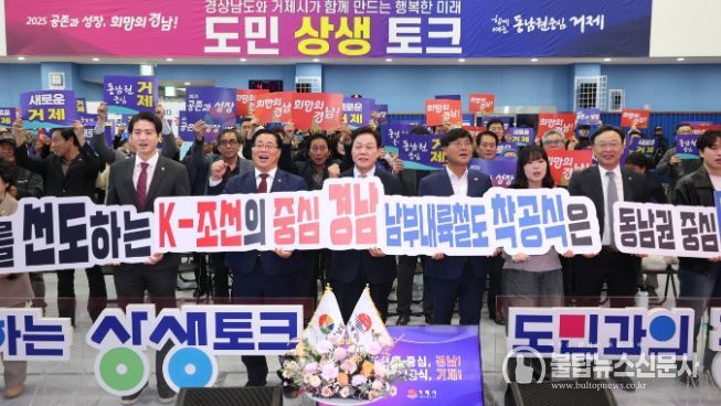 불탑뉴스신문사 송행임 기자 | 경상남도는 18일 거제 반다비체육센터에서 열린 ‘도민 상생토크’에서 기업혁신파크, 광역교통망, 미래산업 등을 연계한 성장전략을 제시하며 지원 의지를 밝혔다.