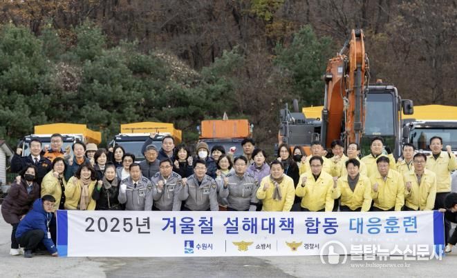 불탑뉴스신문사 차복원 기자 | 수원특례시는 겨울철 강설에 대비해 4개 구청, 유관기관, 민간단체와 함께 설해 대책 합동 현장대응 훈련을 하고, 제설 대응·협력 체계를 점검했다.