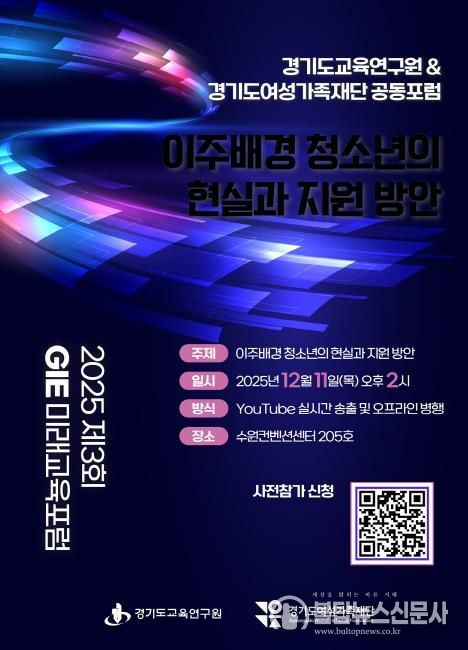 불탑뉴스신문사 차복원 기자 | 경기도여성가족재단이 11일 오후 2시 수원컨벤션센터에서 ‘이주배경 청소년의 현실과 지원방안’을 주제로 경기도교육연구원과 공동포럼을 개최한다.