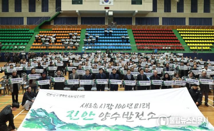 불탑뉴스신문사 차복원 기자 | 진안군이 26일 오후 진안문예체육회관에서 군민 500여 명과 주요 내빈이 참석한 가운데 ‘진안양수발전소 유치 성공기원 범군민 결의대회’를 성황리에 마무리하고, 유치 성공에 대한 강력한 의지를 대내외에 선포했다.
