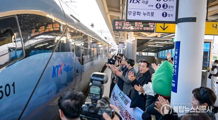 불탑뉴스신문사 차복원 기자 | 울산 북구는 30일 북울산역 KTX 이음 첫 차 운행에 따라 현장을 방문, KTX 이음 정차를 환영하고, 이용객들의 의견을 듣는 시간을 가졌다.