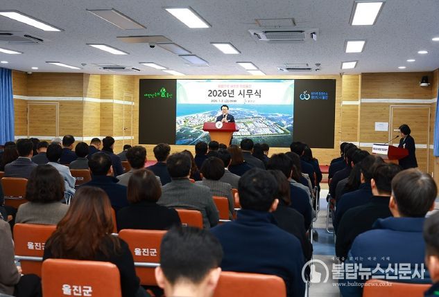 불탑뉴스신문사 차복원 기자 | 손병복 울진군수가 2026년 병오년(丙午年) 새해를 맞아 울진군민 모든 가정에 건강과 행복이 가득하길 기원하며 울진군 미래 100년을 지속할 성장의 길로 함께 나아가는 내용의 2026년 신년사를 발표했다.