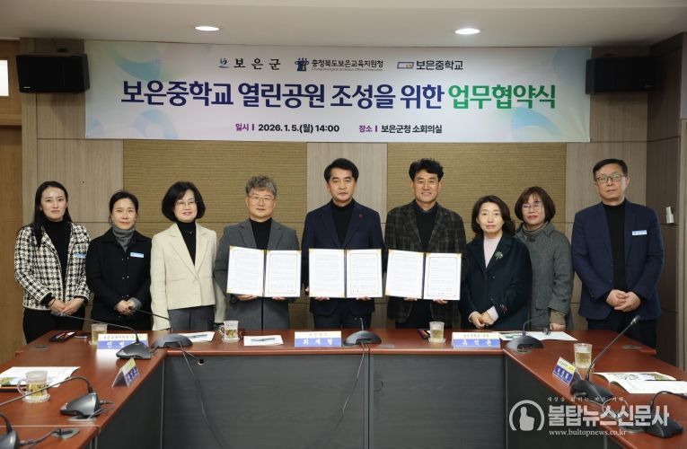 최재형 보은군수는 “이번 협약은 학교와 지역이 함께 공간을 만들어가는 의미 있는 출발점”이라며 “보은중학교 열린공원이 학생과 지역 주민 모두가 편하게 이용하는 생활 밀착형 녹지 공간으로 자리 잡을 수 있도록 적극 지원하겠다”고 말했다.