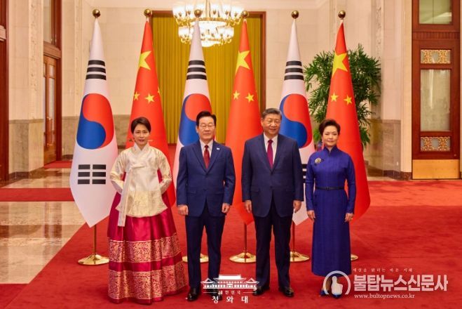 불탑뉴스신문사 차복원 기자 | 중국을 국빈 방문 중인 이재명 대통령은 5일(현지시간) 오후 베이징에서 시진핑 국가주석과 정상회담을 갖고 한중 관계 발전 방향과 주요 현안을 폭넓게 논의했다.