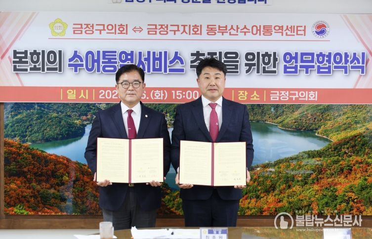 불탑뉴스신문사 송행임 기자 | 금정구의회는 2026년 1월 6일, 금정구의회 의장실에서 동부산수어통역센터(센터장 여복기)와 '본회의 수어통역 서비스 제공을 위한 업무협약'을 체결했다.