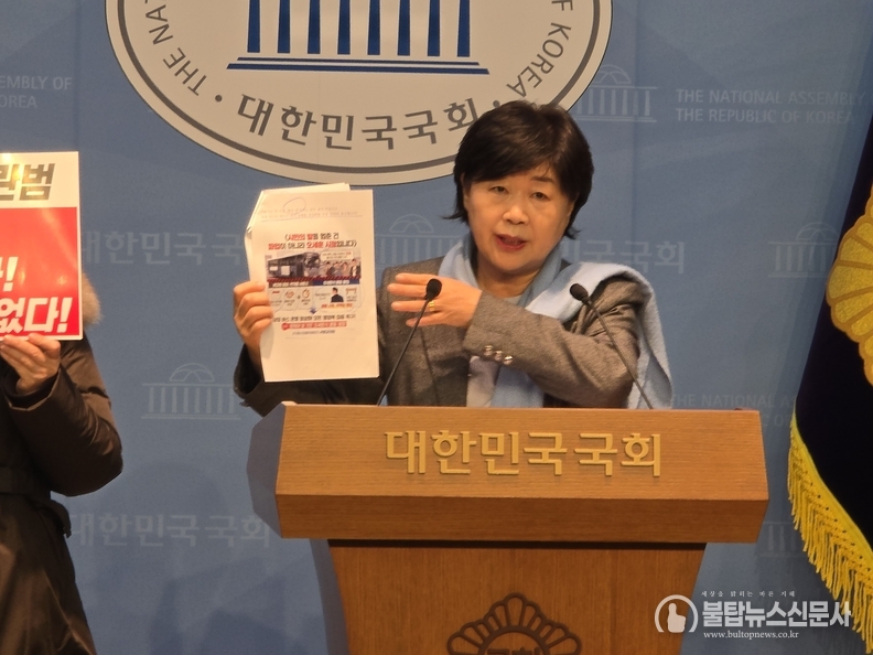 ▲더불어민주당 서영교의원 시내버스 파업에 대한 오세훈 서울시장을 사퇴촉구하는 기자회견(사진출처=불탑뉴스)