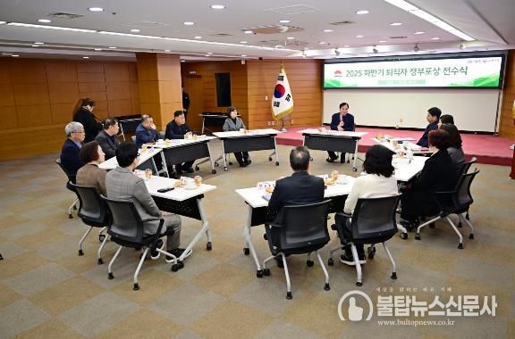 불탑뉴스신문사 차복원 기자 | 김천시는 지난 19일, 시청 2층 회의실에서 ‘2025년 하반기 퇴직 공무원 정부포상 전수식’을 개최했다.