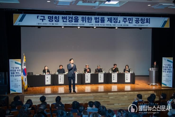 불탑뉴스신문사 차복원 기자 | 인천 서구는 지난 19일 서구문화회관 소공연장에서 지역주민 약 200여 명이 참석한 가운데 ‘구 명칭 변경을 위한 법률 제정 주민 공청회’를 개최하고 주민 의견을 수렴했다.