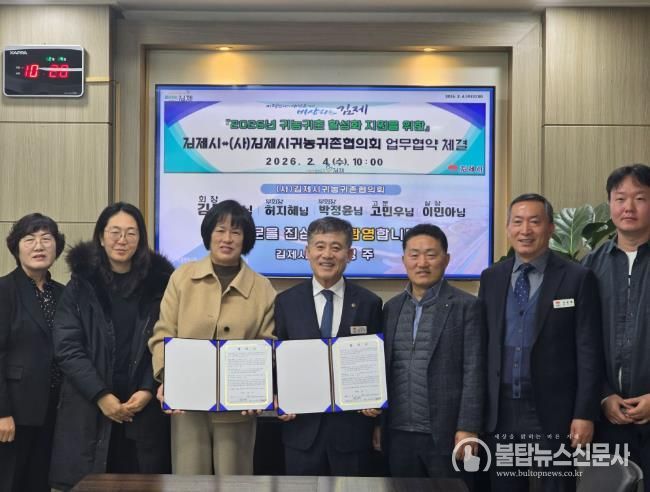 정성주 김제시장은 “이번 협약은 귀농귀촌 정책을 보다 전문적이고 체계적으로 추진하기 위한 중요한 발판”이라며, “귀농귀촌인이 김제에서 새로운 삶을 시작하고 안정적으로 정착할 수 있도록 지속적인 지원과 정주여건 개선에 힘쓰겠다”고 밝혔다.