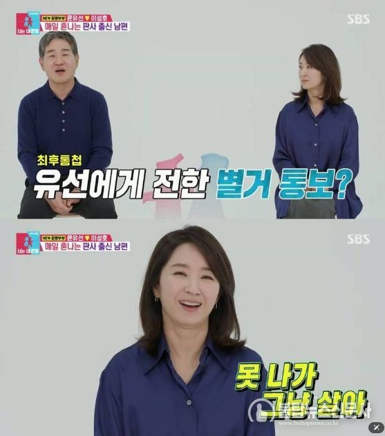결혼 25년 만의 첫 동반 출연에 부부는 다소 어색한 기색을 감추지 못했다. 윤유선은 “결혼하고 나서부터 인터뷰 요청이 많았는데 공직자 신분이라 안 하다가 오늘 같이 오니까 엄청 어색하다. 제가 데뷔하는 기분”이라며 소감을 밝혔다. 이성호는 결혼식 당시에도 인터뷰를 고사했던 것을 떵올리며 “(인터뷰하면) 검은 머리 파뿌리 될 때까지 잘 살겠다 해야 되는데 제가 법조인으로서 거짓말 못 하겠다고 했다”며 해맑은 모습을 보였다. 반면 윤유선은 “몰랐던 얘기다. 쓸데없이 정직해가지고”라며 어이없는 듯한 웃음을 지어 보였다. 그럼에도 이성호는 멈추지 않고 “그렇다고 사실대로 말할 순 없지 않냐”고 능청을 이어갔고, 이에 윤유선은 “그땐 제가 이런 얘기 참 재밌어했다”며 반전 취향(?)을 드러냈다. 이에 스튜디오에서 이현이는 “잘 맞으시나 보다. (아내 입장에서) 기분 나쁠 수도 있는데”라며 울분을 대신 토해냈고, 김구라는 “이분이 한때 여자 김구라”라며 윤유선의 시원 솔직한 매력을 짚었다.