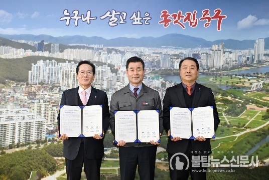 울산 중구와 울산신용보증재단, (재)울산경제일자리진흥원은 2월 6일 오후 2시 중구청 구청장실에서 ‘2026년 소상공인·중소기업 경영안정자금 사무위탁 협약’을 체결했다.