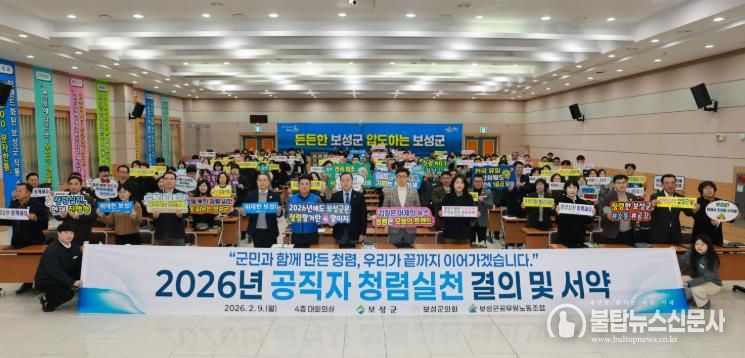 불탑뉴스신문사 차복원 기자 | 보성군은 지난 9일 보성군청 대회의실에서 보성군, 보성군의회, 보성군공무원노동조합이 공동 참여한 ‘2026년 반부패·청렴 실천 결의 및 서약식’을 개최했다고 밝혔다.