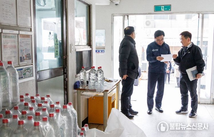 불탑뉴스신문사 차복원 기자 | 진교훈 서울 강서구청장이 11일 오후 단수로 불편을 겪고 있는 방화동의 한 아파트를 찾아 주민 피해 현황과 복구 진행 상황을 점검했다.