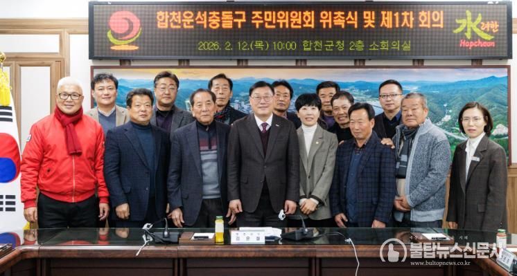 불탑뉴스신문사 차복원 기자 | 합천군은 2월 12일 군청 2층 소회의실에서 '합천운석충돌구 주민위원회' 위촉식 및 제1차 회의를 개최했다.