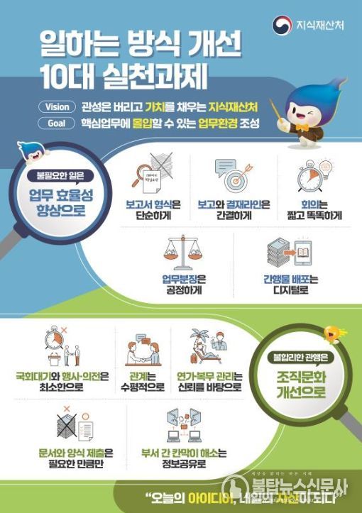 불탑뉴스신문사 차복원 기자 | 지식재산처는 2월 27일 업무방식을 근본적으로 재점검하고 조직 역량을 신규·핵심 업무에 집중하기 위한 '일하는 방식 개선방안'을 수립·시행한다.