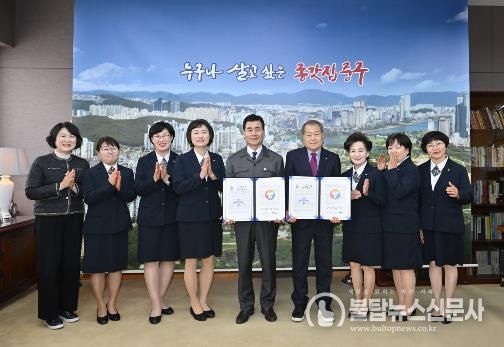 불탑뉴스신문사 차복원 기자 | 울산 중구와 울산안전생활실천시민연합이 3월 5일 오후 2시 중구청 구청장실에서 ‘안전취약계층 시민생활안전교육’ 운영을 위한 업무협약을 맺었다.